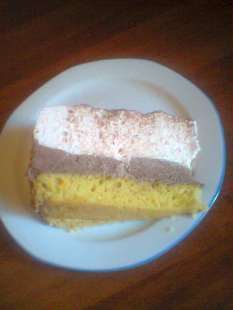 Oul se amesteca cu zaharul, faina, laptele, uleiul, zaharul vanilat, 1/2 praf de copt și faina. Faina se pune astfel incat aluatul sa nu fie nici prea moale, nici prea tare. Se coace în forma rotunda cu pereți detașabili și se răcește.