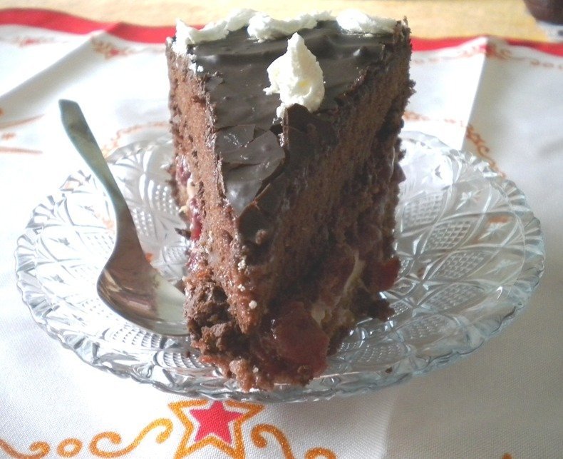 Lingura de crema am topit-o la bain marie si apoi am adaugat o ciocolata Heidi Dark extreme rupta bucatele. Am glazurat tortul cu un strat gros care s-a intarit imediat.