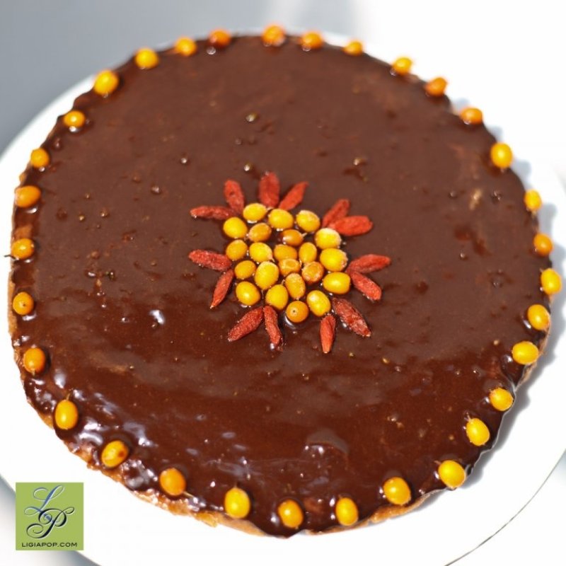 Umplutura se prepara in blender, se adauga peste blat, si se da la congelator pentru o ora, sau pana se intareste putin.Ciocolata de asemenea, se prepara foarte simplu prin amestecare si se orneaza tortul, dupa scoterea de la congelator. Se orneaza dupa preferinta. Pentru mai multe retete raw, vizitati http://ligiapop.com/