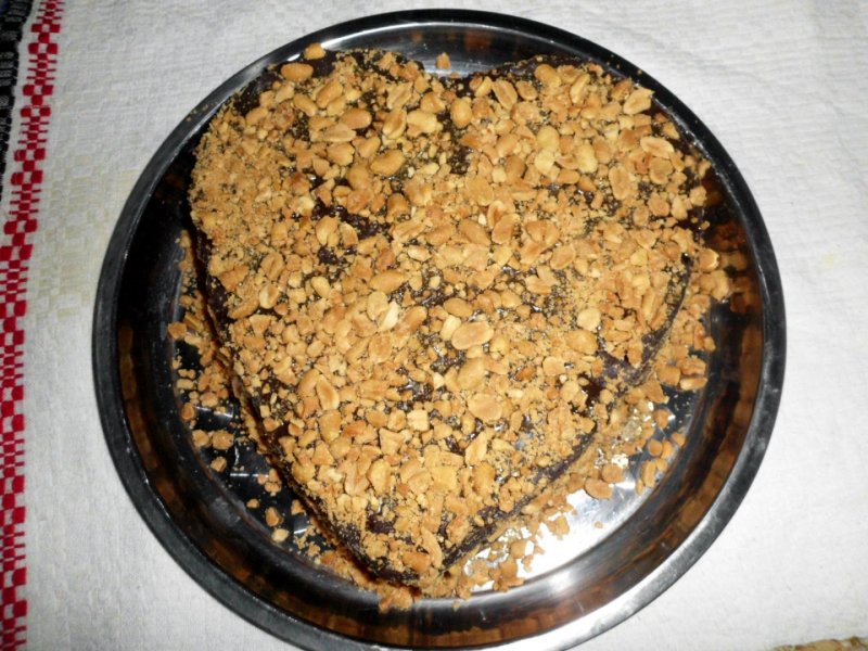 Ungem forma de tort cu unt,o tapetam apoi cu faina si turnam compozitia in tava,dam tava la cuptor pentru circa o ora la cuptorul gata incalzit.