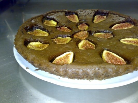 Dupa 2 ore,scoteti tortul din frigider,taiati smochinele in patru,dupa ce le-ati curatat de coaja,le asezati pe superficiu tortului,apasand putin,si introduceti in cuptor 150°C timp de 30';