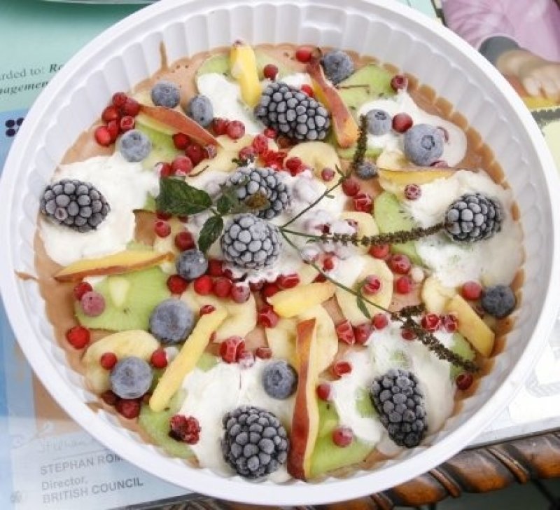 Tortul de inghetata poate fi facut de noi in casa, dupa cum urmeaza: se cumpara 2-3 plicuri de praf de inghetata care va fi omogenizat in lapte, pentru fiecare plic in parte se adauga cate 200 de ml de lapte, dupa care se amesteca cu mixerul aproximativ 10 minute pana se-ngoasa compozitia, separat se pot taia fructe si se pot amesteca in inghetata. Aceasta se va da la congelator pentru inceput 2 ore dupa care se scoate inghetata si se poate decora cu frisca si se pot adauga fructele oprite pentru décor: mure, zmeura, coacaze, afine si felii de kiwi, mar si banane. Dupa ce s-a terminat de decorat, inghetata se introduce din nou la congelator pentru 3-4 ore. Se poate servi alaturi de pepene cu fructe xaramelizate.