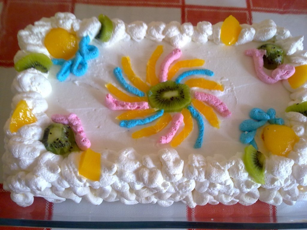 Batem spuma albusurile cu zaharul,intr-un alt bol amestecam galbenusurile cu laptele,acestea din urma le punem peste albusurile cu zaharul si se amesteca usor cu o paleta. Toata aceasta compozitie se pune la baie de aburi,se amesteca usor pana devine de cosinstenta smantanei,se ia dupa aburi si se lasa se raceasca.Intre timp taiem cubulete fructele,batem 1l de frisca si topim gelatina cu 100ml de apa se pune la baie de aburi si mestecam continu pana se topeste. Cand este gata gelatina se pune in conpozitia de mai sus,daca este rece amestecam cu litrul de frisca batut in prealabil. Se monteaza in diferite forme,se pune pe fundul formei ceolofan fin si se pune un rand de fructe un rand de compozitie,deasupra formei se pun piscoturi sa biscuiti dupa preferinta. Se da la rece doua ore, se scoate se rastoarna pe o tava si se orneaza dupa gustul fiecaruia.Pofta buna.....