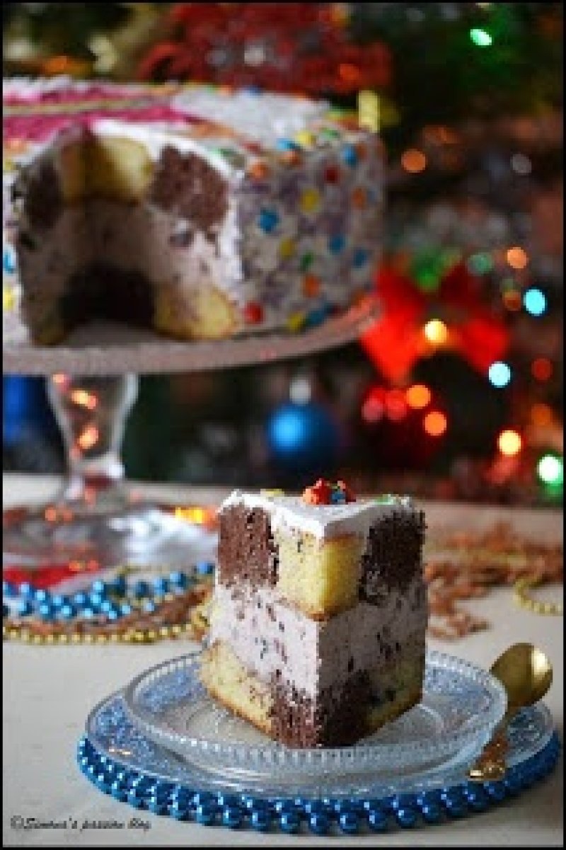 Desprindem apoi pereti formei de tort,il asezam pe un platou si imbracam tortul intr-un strat subtire de frisca.