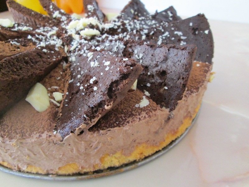 In tava de tort se pune primul blat (daca vreti puteti sa-l insiropati cu un sirop facut din apa cu zahar). Peste blat se pune mousse-ul. Se da la rece 2 ore. Se pudreaza cu cacao. Blatul 2 se taie in felii si se pune peste mousse.