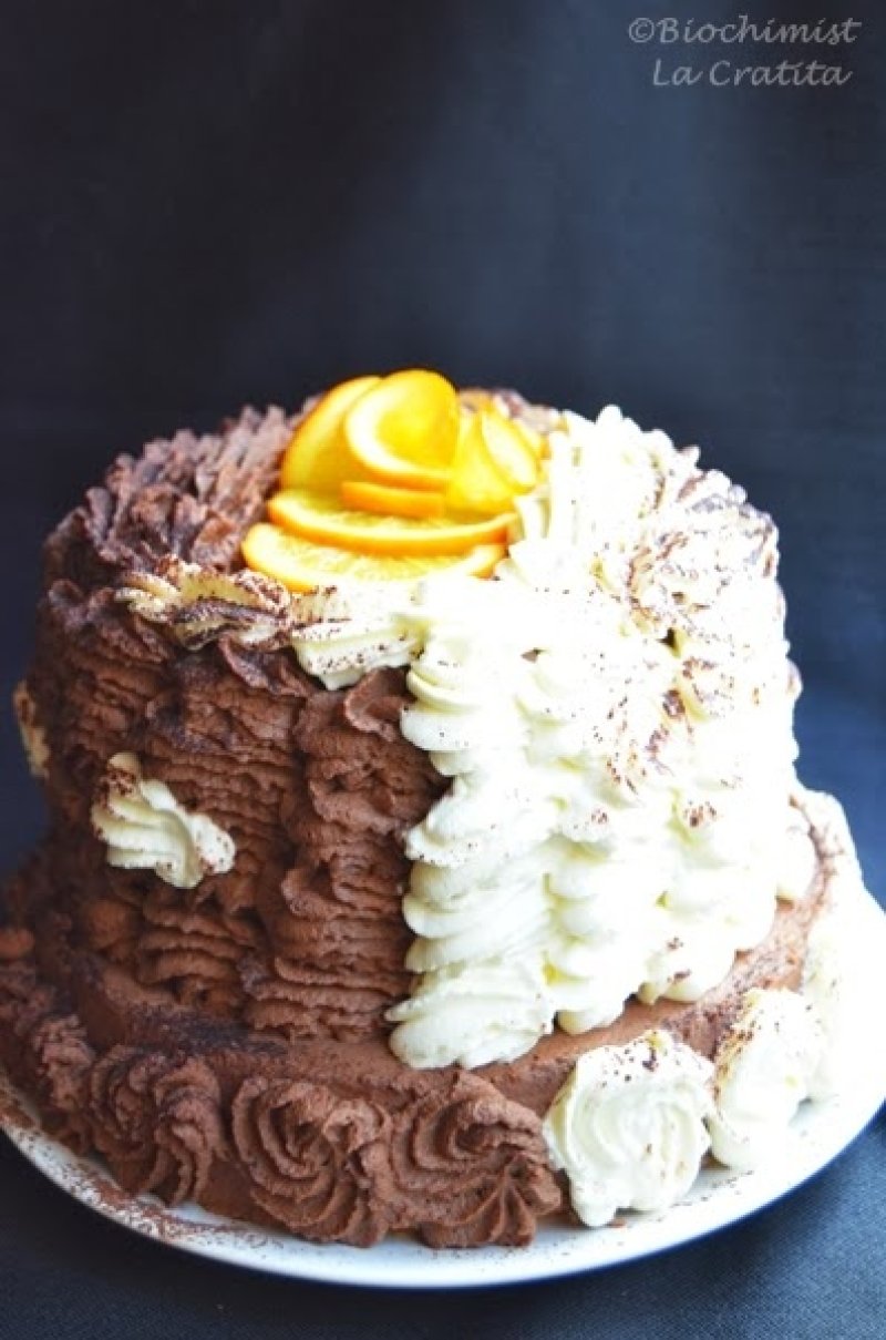 10. Pe mijlocul tortului, sus, punem feliile de portocala.