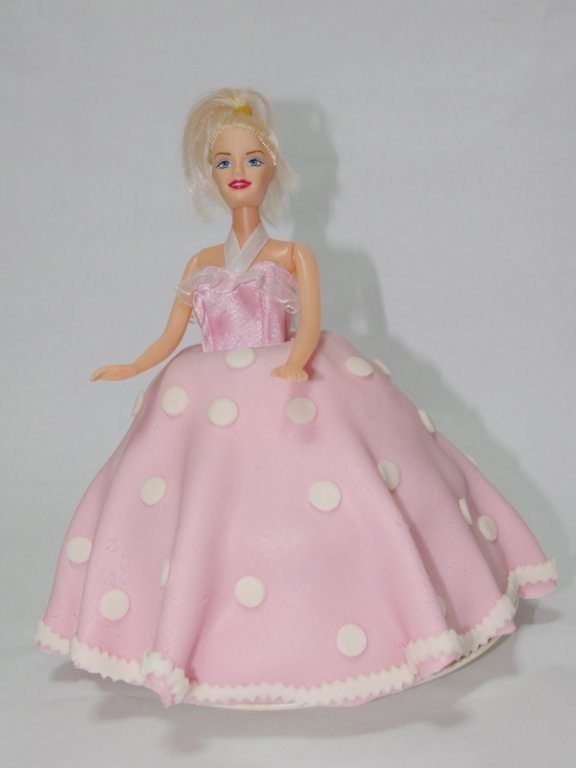 Apoi tai blaturile, asta dupa ce le asezi frumos unu peste altul si te apuci a ciopli la fusta :)) le insiropezi, ungi cu crema si... mananci :)) nici chiar asa :P. Asezi pasta de zahar peste, te chinui sa iti iasa cat de cat o fusta, faciniste valurele, pliuri, falduri ce poti si tu si ornezi. Si gata! A, nu! Faci o mica gaura deauspra si infingi papusa, careia ii scoti picioarele (saraca) si o invelesti cu folie de aluminiu pana la brau.