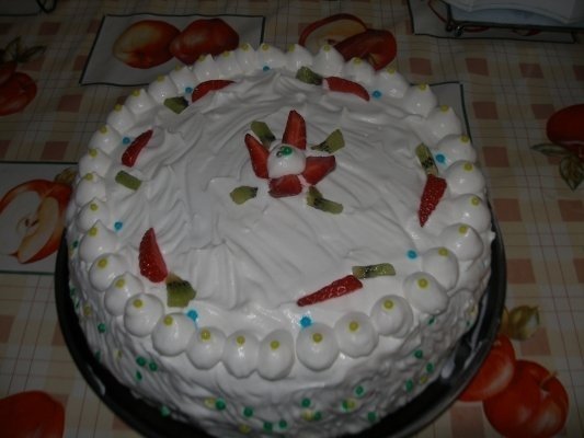 blat.Se bat albusele spuma se adauga cate 2 linguri de zahar apoi se pun galbenusele,faina si praful de copt.Compozitia se pune in tava unsa si tapetata si se da la cuptor.crema.se prepara budincile si se lasa sa se raceasca.Blatul se taie si se insiropeaza .Pe blat se pun felii de capsuni apoi budinca si cate o lingura de frisca.Cand e gata montat tortul se orneaza cu frisca ramasa.