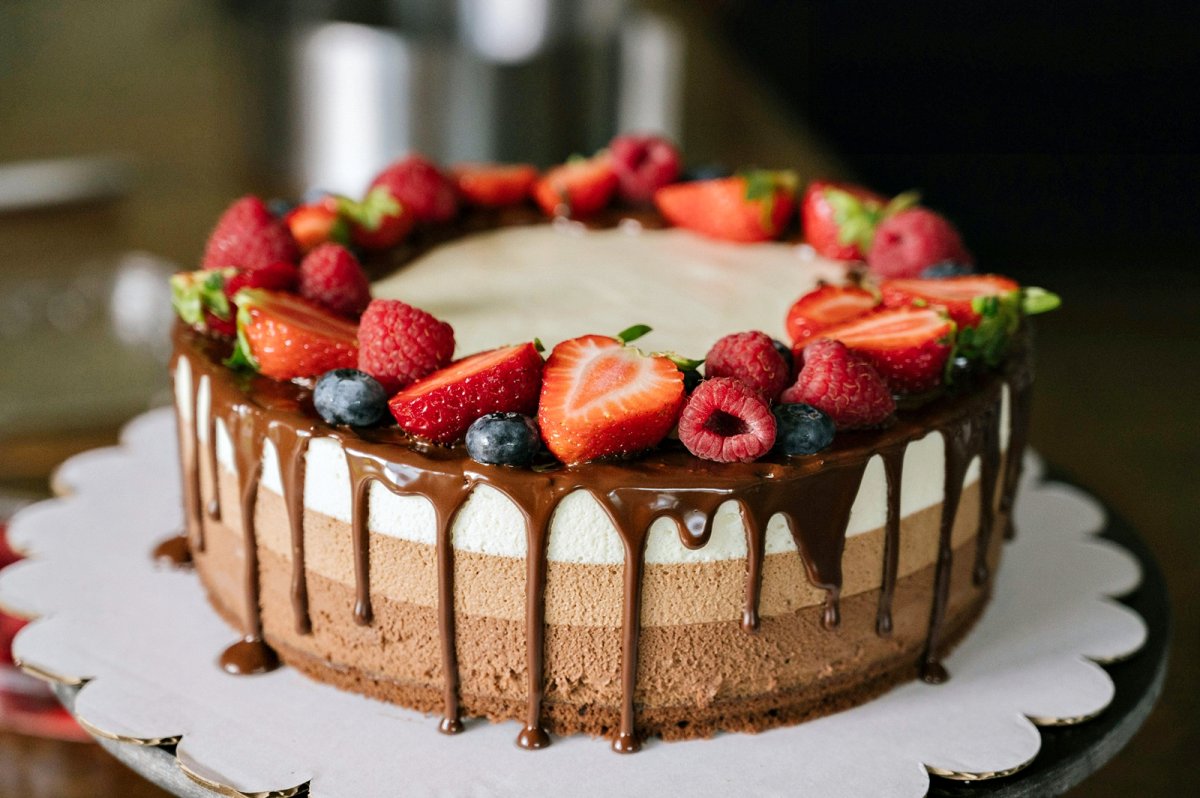 Tort Trio de Ciocolata. Reteta perfecta de tort cu blat umed de cacao si trei mousse-uri fine din ciocolata neagra, cu lapte si alba. Prepata un desert elegant si delicios, ideal pentru orice ocazie, in doar cativa pasi simpli!