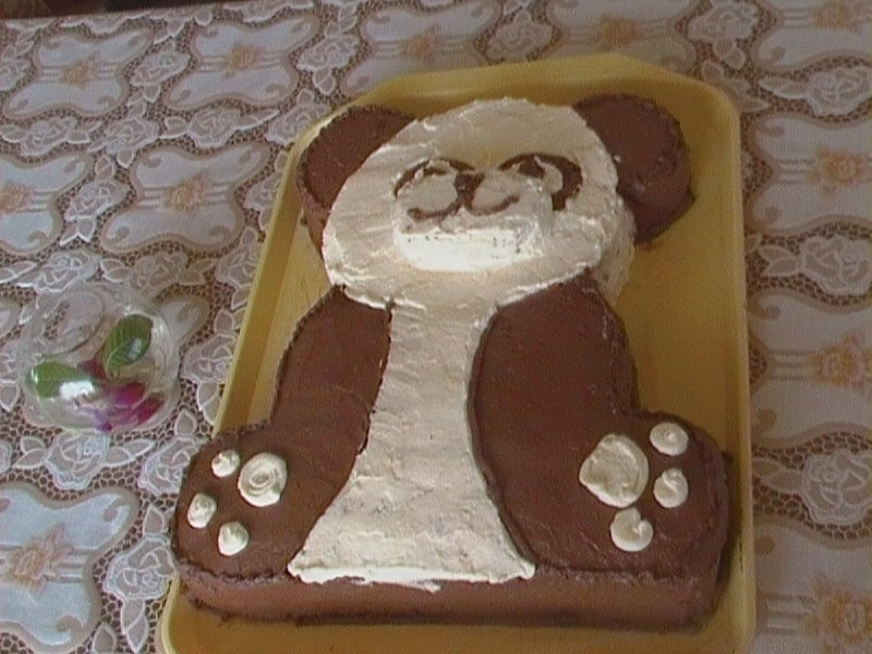 Se pregateste crema de ciocolata dupa instructiunile de pe plic.Capul ursuletului se va orna cu frisca, si restul corpului cu crema de ciocolata. Mai bine se observa din poze.