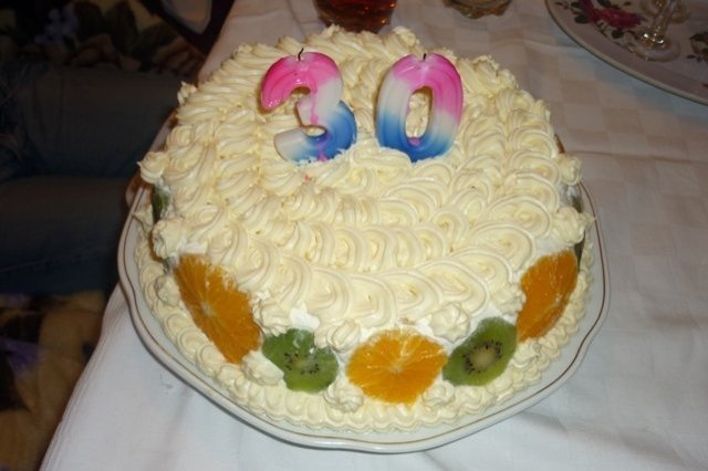 Pentru ormament eu adaug pe marginile interioare ale formei de tort felii de portocala si kiwi taiate rotund. Aveti grija ca acestea sa ramana fixate pe peretele formei de blat cand adaugati feliile de blat si compozitia de blat.