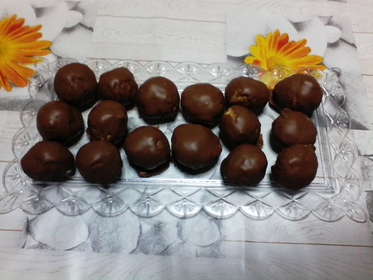 Punem in congelator pentru 15 minute. Topim ciocolata pe bain mari. Scoatem tava din congelator si punem bilutele una cate una in ciocolata topita. Sunt foarte bune.