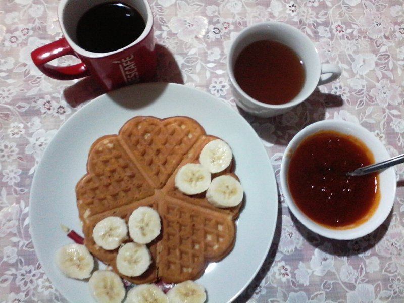 Bateti oualele si amestecati-le cu zaharul si margarina/unt pana obtineti un aluat omogen. Apoi adaugati faina si praful de copt si amestecati, apoi adaugati treptat laptele si vanilia si amestecati pana cind aluatul are o consisteta omogena si moale. Turnati cca. 3 linguri de aluat in mijlocul plitei de jos si inchideti. Coaceti fiecare vafa cca. 3 min, pana devine brun-aurie.