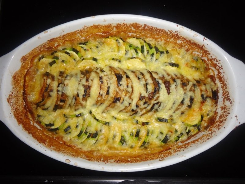 Se spala vanata si dovlecei, se curata de coaja(un rand da , unul nu),se taie rondele nu prea groase .Se pun intr-o strecuratoare de plastic si se pudreaza cu sare.Se lasa la scurs cam 15 minute. In acest timp pregatim un vas rezistent la cuptor,il ungem cu untul si presaram pesmetul , pe care-l intindem bine pe fundul si marginile vasului. Pe centrul vasului asezam felie langa felie vanata,iar pe margini la fel procedam si cu dovlecelul.Intr-un castronel batem iaurtul cu sare, piper si apoi turnam compozitia pe toata suprafata legumelor.Bagam vasul in cuptor pentru 30 de minute la temperatura de 200 grade.Dupa cele 30 de minute scoatem vasul cu grija, presaram cascavalul tocat , apoi dam iar la cuptor legumele pentru inca 5-7 minute.