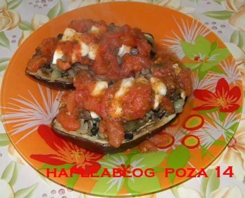 - după ce s-a topit mozzarela, scoatem vinetele umpute din cuptor şi turnăm sosul de roşii.