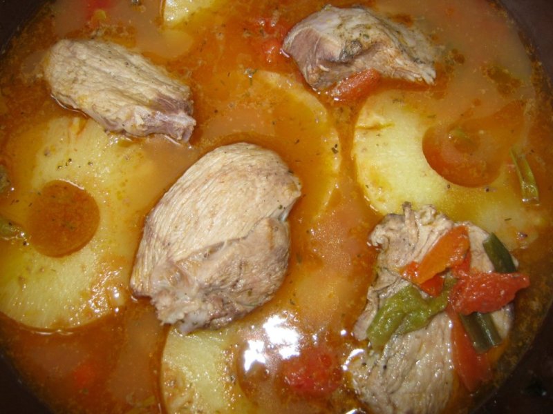 A doua zi,sau peste câteva ore,se ia vasul cu carne,se adaugă căţeii de usturoi zdrobiţişi roşiile tăiate şi se pune la cuptor acoperit.