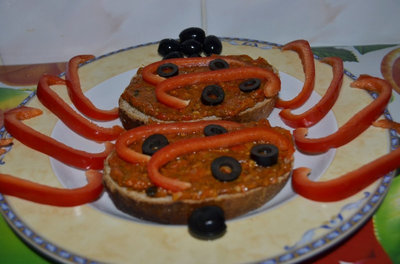 Se dau toate ingredientele prin masina de carne,se amesteca cu condimentele si se pun la fiert cu ulei,mestecam intr-una sa nu se prinda de vas.Cand uleiul incepe sa iasa deasupra oprim focul ,punem compozitia in borcane ,le punem capacele si le dam la cuptor pentru circa 30 de minute.Apoi oprim focul si le lasam in cuptor sa se raceasca.Pofta buna!