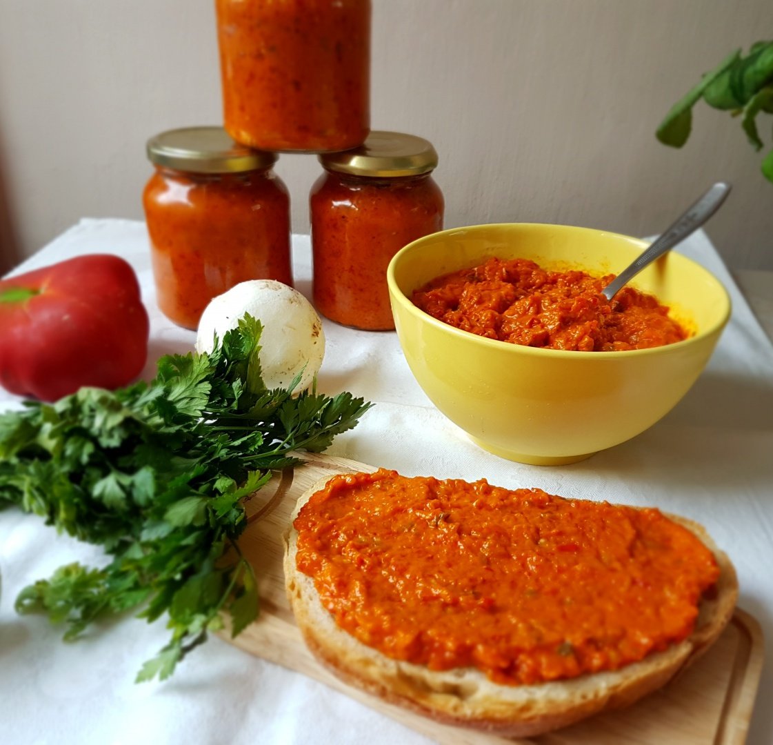 Vinetele se prajesc si se curata de coaja, apoi se lasa sa se scurga. Se toaca marunt. Eventual se pot pregati inainte cu o zi. Dupa ce au fost tocate, se cantaresc 1.2 kg. Se adauga ceapa peste gogosari si se lasa impreuna timp de 30 de minute sa fiarba. Apoi se pun vinetele, ciupercile si morcovii. Se lasa sa fiarba impreuna inca o ora buna, pana capata consistenta dorita. Se adauga si sare dupa gust in timpul fierberii.