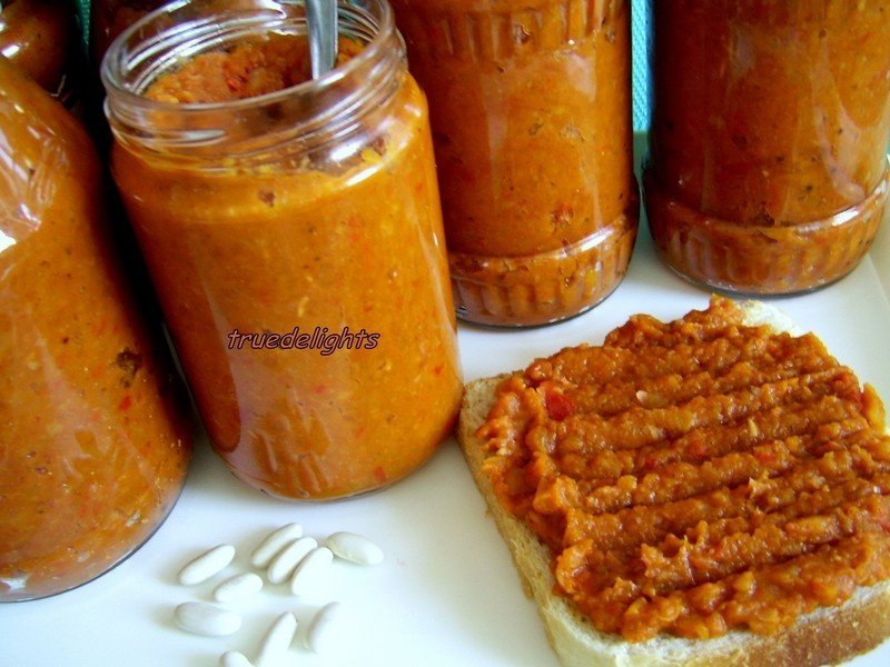 Ceapa, morcovul si ardeiul se curata se spala si se trec prin masina de tocat .Se pun apoi in ulei incins la calit. Totul va bolborosi vreme de o ora, in vas acoperit, pe foc mic, amestecand des, sa nu se prinda. Cand fasolea a fiert ,se scurge de apa, se paseaza cu blenderul (sau se trece prin masina de tocat) si se adauga in oala .Tot acum se adauga si bulionul si se lasa zacusca sa mai fiarba 10-15 minute. Se potriveste de piper si sare. Oala se da apoi la cuptor pentru inca 30-40minute. Zacusca se pune fierbinte in borcanele sterilizate. Deasupra fiecarui borcan se toarna putin ulei . Pentru siguranta , se pun borcanele cu zacusca intr-o cratita mare, la fiert, inca 30minute.