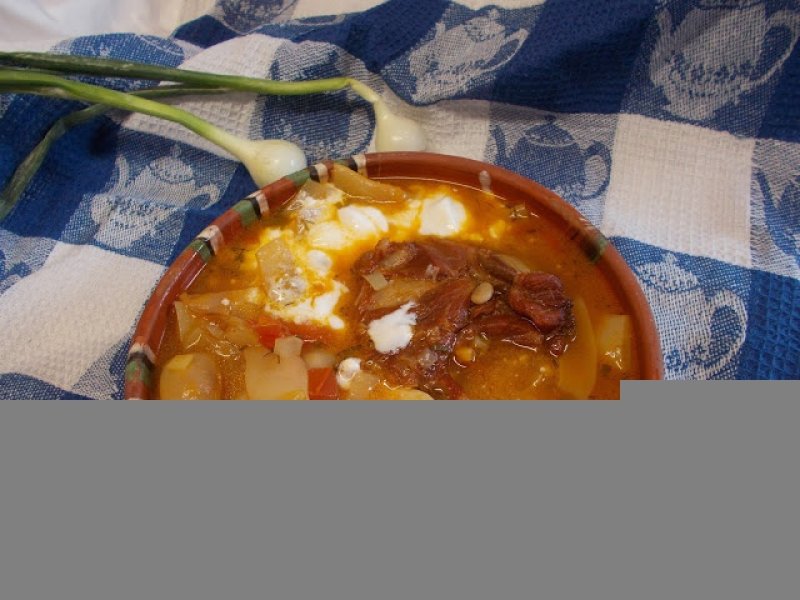 Intr-o cratita punem uleiul, ceapa si lasam sa se caleasca. Adaugam radacinoasele, apoi ardeiul, rosiile taiate cuburi, o cana de apa si lasam sa fiarba toate legumele.