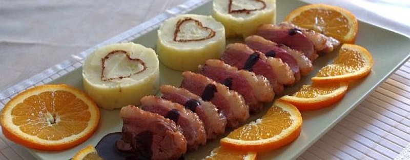 Îmi doream de ceva vreme să gătesc o reţetă care mi-a plăcut enorm. S-a ivit şi ocazia acum câtva timp când am găsit piept de raţă într-un supermarket de la noi. Am avut ocazia să o gust într-un mic restaurant cochet din Amiens, Franţa. Cel care mi-a recomandat acel fel de mâncare este un om deosebit. El mi-a povestit câte ceva despre gastronomia din acea zona şi despre locurile încarcate de istorie pe care le-am vizitat. Reţeta pe care am făcut-o are doar câteva ingrediente, însa este deosebită.