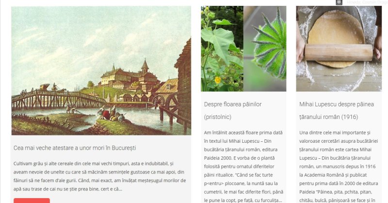 articole despre istoria pâinii și a domeniilor conexe de la noi, specialitatea casei cum s-ar zice, gastroart.ro fiind primul site dedicat cercetării istoriei gastronomiei românești. Zilnic proiectului i se va adăuga content original.