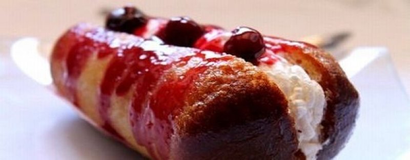 Le taiem pe lungime, le umplem cu frisca, le lipim si le servim cu sirop de visine si visine sau cu fructe proaspete sau chiar simple. Sunt delicioase oricum,