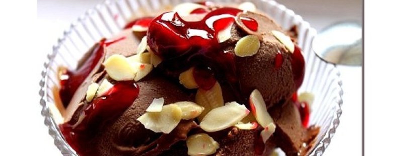 Eu am scos-o de 4 ori si am frecat-o ffff bine. Dupa a patra oara se mai lasa inca 2 ore la congelator fara sa o atingem si gata ingheatata noastra. Putem sa o servim cu diverse sosuri, fructe proaspete, fructe confiate, etc. Eu am servit-o cu un sos de cirese acrisor si fulgi de migdale.