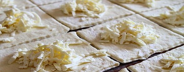 Intindem biluta in foaie cam de 0,5 cm grosime si o taiem in patrate cam de 6 cm sau chiar mai mari. Umplem fiecare patratel cu branza sau cascaval ras.