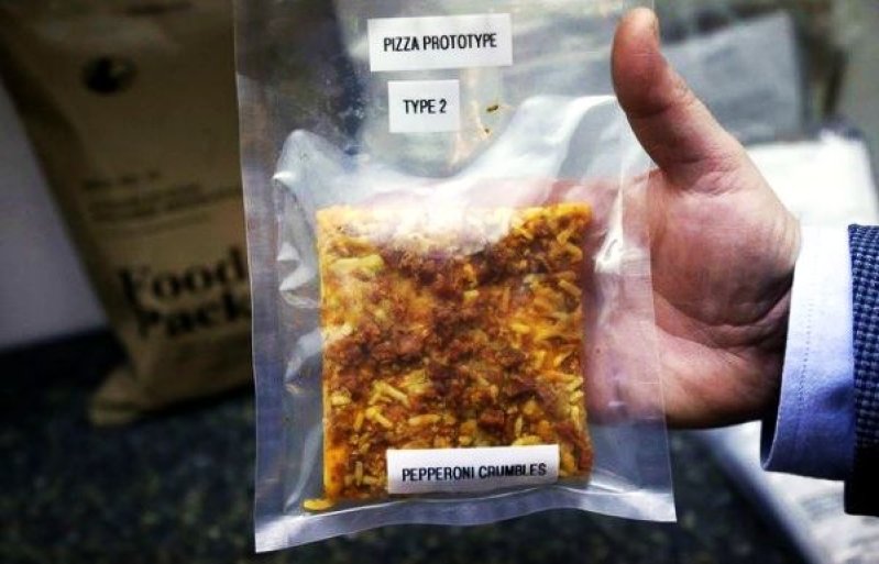 Cativa cercetatori de la laboratorul militar din Massachusetts au lucrat de zor in ultimii ani, incercand sa creeze o pizza care sa reziste cat mai mult fara sa fie refrigerata si care sa-si pastreze si gustul. Ei au reusit in cele din urma sa faca un astfel de produs alimentar hranitor si rezistent in timp. Proiectul a inceput ca urmare a cererilor insistente ale soldatilor din armata americana.