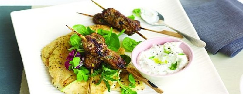 Carne tocata de miel, amestecata cu ceapa taiata marunt, pasta de curry si coriandru, presata in jurul unei frigarui, servita cu lipie, salata si iaurt amestecat cu menta si usturoi.