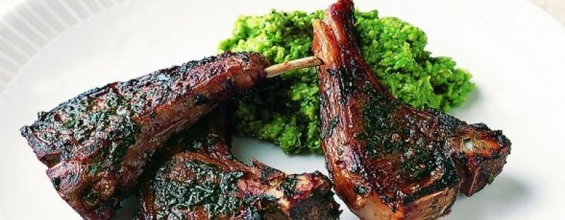 2. Cotletele de miel se pregatesc pe grill, timp de 2-3 minute pe fiecare parte. Se lasa 5 minute acoperite, dupa care se servesc cu piureul de mazare.
