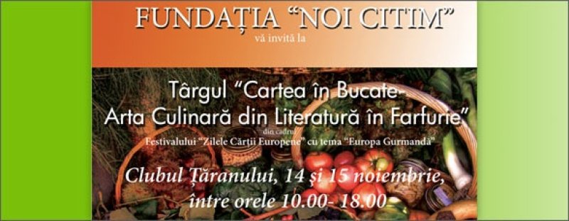 Festivalului „Zilele Cartii Europene”, eveniment desfasurat simultan in mai multe capitale europene are anul acesta drept tema principala: „Europa Gurmanda”. Bucurestiul este capitala europeana si de aceea Fundatia „Noi Citim” organizeaza cu aceasta ocazie tragul „Cartea in Bucate – Arta Culinara din Literatura in Farfurie”, eveniment cu vanzare de carte, delicatese si ateliere culinare. Acest eveniment se desfasoara in zilele de 14-15 noiembrie 2009, intre orele 10:00-18:00, la Clubul Taranului.