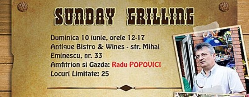 Pe 10 iunie se anunţă o zi frumoasă de vară nu doar din punct de vedere meteorologic, ci şi din punct de vedere gastronomic. Radu Popovici ne invită ca după ce ne-am votat primarii să trecem pe la terasa localului Antique Bistro & Wines între orele 12:00 şi 17:00 pentru un adevărat dezmăţ culinar la grătar. Vor fi servite 5 feluri de mâncare, câte 3 pahare de vin şi unul de proseco, toate într-o atmosferă încântătoare.