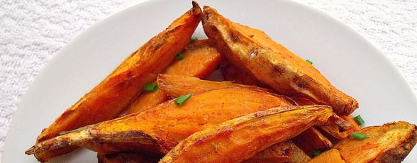 3 cartofi dulci, cca. 600 grame, spalati cu un burete de sirma si taiati in 6, pe lung,