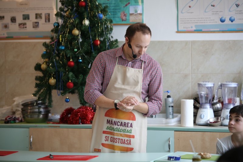 Am fost profesor si stiu sa gatesc, asa ca atunci cand ne-am gandit la rubric asta de aici am pornit. Cineva sa aiba rabdare sa iti explice clar cum se face. M-am mai jucat cu predatul de gatit si cand eram profesor de engleza. In scoala in care activam aveam un curs ce se preda o singura data pe saptamana, numit University Course. Fiecare profesor putea preda orice in cadrul acestui curs, de la echitatie, inot sau pian, pana la gatit, fotbal sau scrima. Indiferent ce-ti alegeai, scoala iti punea la dispozitie absolut totul. Eu imi alesesem sa gatesc cu copii de diverse varste. Era printre cele mai populare cursuri din scoala la acea vreme. Gatitul era la fel de popular ca si fotbalul.