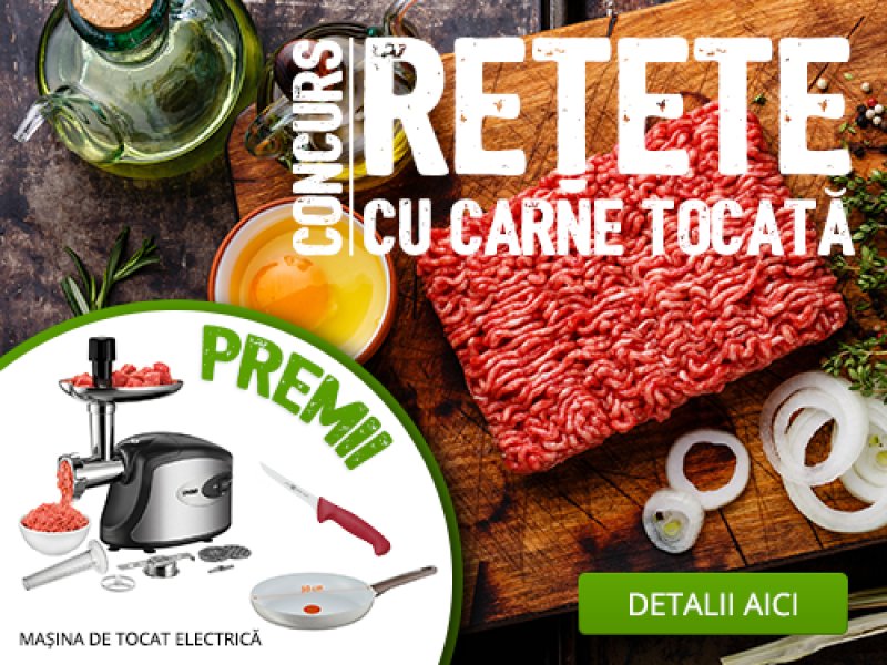 Inscrieti in perioada 12 ianuarie - 5 februarie 2017 pe site-ul nostru cel putin 2 retete cu CARNE TOCATA. Pot fi inscrise orice minime doua combinatii de retete cu carne tocata, aperitive, feluri principale sau ciorbe.