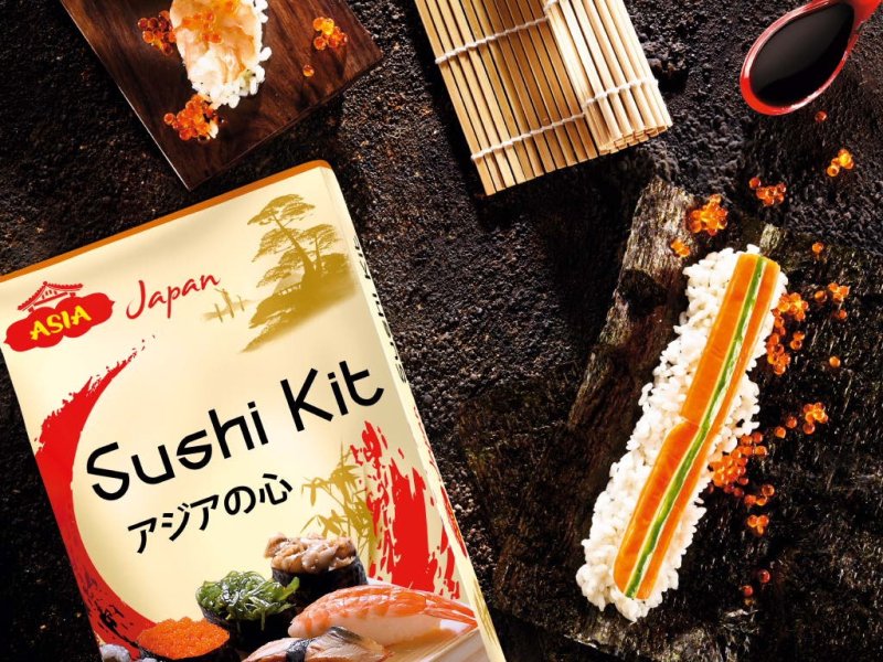 Dacă îți place să mănânci sushi, atunci kit-ul pentru sushi (29.99 lei) este alegerea perfectă. Setul conține foi Nori, orez pentru sushi, oțet din orez, sos soia, pastă wasabi, ghimbir, covoraș de bambus pentru rulat, bețișoare și rețete – tot ce este necesar pentru a pregăti acasă această specialitate culinară specific japoneză.