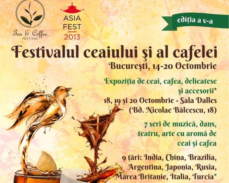 A 5-a ediție a Festivalului Ceaiului şi al Cafelei - Tea&Coffee Festival - are loc în Capitală, între 14 și 20 octombrie.