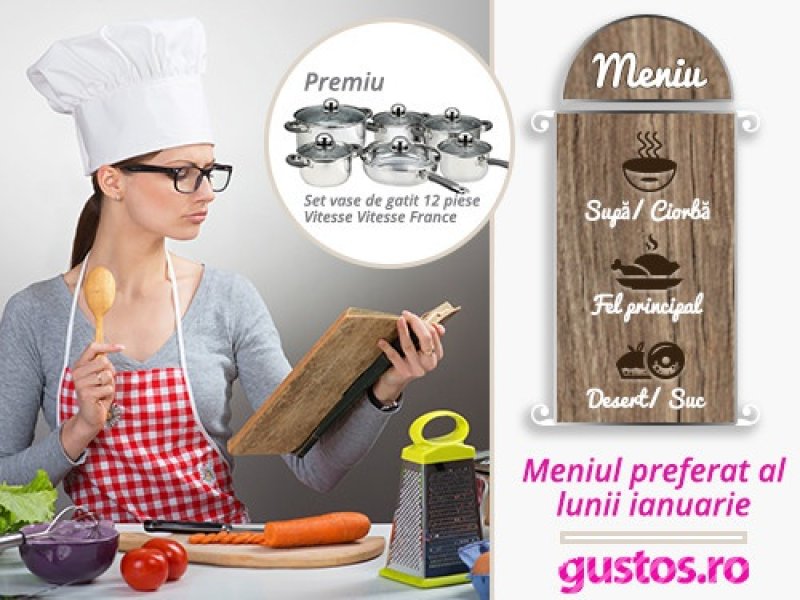 Gustos.ro va invita sa inscrieti in concurs varianta voastra preferata de meniu pentru luna ianuarie, meniu format din 3 retete: