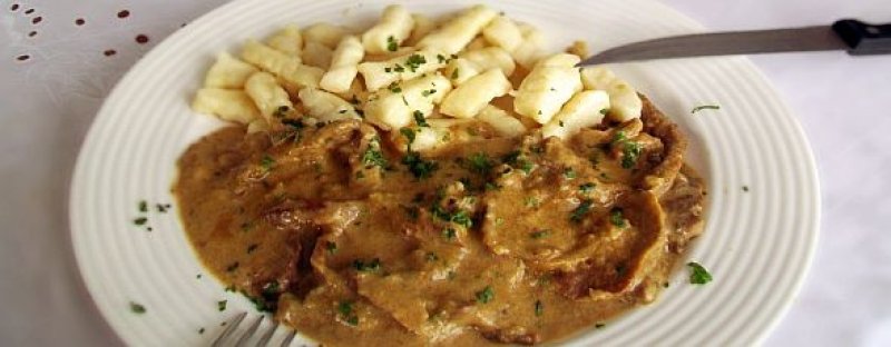 Cate ceva despre acest fel de mancare clasic: se pare ca este reteta care a castigat un concurs culinar in 1890, in Rusia, iar cel care a prezentat-o a fost bucatarul personal al contelui Pavel Stroganoff, numele caruia s-a legat de acest preparat pentru totdeauna. Circula in paralel tot felul de variante: cu sau fara mustar, cu sau fara castraveti acri, cu sau fara pasta de rosii, cu vin sau cu coniac, insa toate variantele sunt de acord asupra continutului de fileu de vita, ciuperci si smantana.