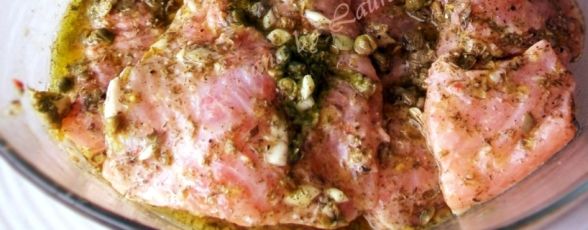 Se servesc alaturi de garnitura preferata (eu am ales dovleceii mei crocanti la cuptor si ma felicit pentru asta!), acoperind fileurile cu sosul de capere ramas.