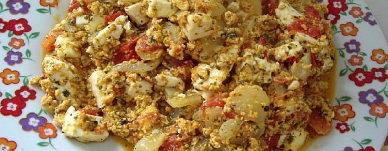Gatiti ardeii pana se inmoaie un pic, adaugati rosiile in tigaie si amestecati pe foc mic 2-3 minute pana cand se lasa sosul din tomate. Se adauga incet ouale sarea si piperul si se amesteca gentil. Adaugati apoi branza si oregano si mai tineti pe foc pana se face. Serviti cu paine proaspata. De mancat rece sau calduta, dupa plac.