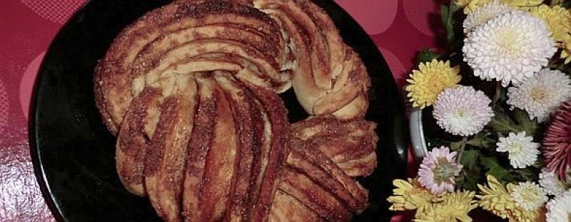 Preincalzim cuptorul la 200 C . Untul moale 50 gr se amesteca cu 6 linguri de zahar si scortisoara.
