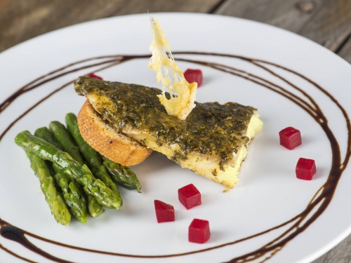 22. Pastrav la grill, cartofi cu pesto si sos de lamaie cu usturoi
