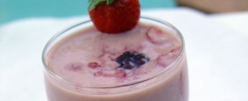 Shake de fructe de padure – lapte, fructe de padure (dupa sezon, mure, afine, zmeura...), suc de mere si gheata.