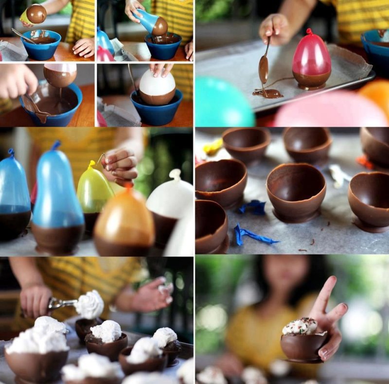 Suntem convinsi ca printre noi se numara foarte multi iubitori ai deserturilor deosebite. Pentru ca si noua ne place tare mult sa pregatim retete inedite, cu care sa-i surprindem pe cei dragi, cautam in fiecare zi idei noi si ingenioase. Asadar, astazi va prezentam minunatele boluri de ciocolata, pe care le puteti umple cu orice va trece prin cap, de la fructe, la bombonele sau diferite tipuri de inghetata. Iata modalitatea de preparare a acestor minunatii.