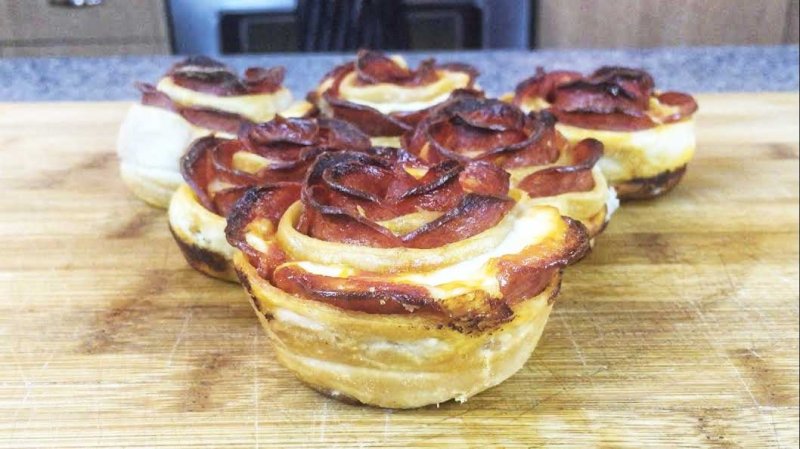 Da, ati citit bine. Daca se pot face trandafiri din mere, atunci de ce sa nu se poata face si pizza in forma de trandafiri? De fapt, acest preparat este perfect pentru Ziua Indragostitilor, se face extrem de usor si va fi mai de efect decat clasicul buchet de trandafiri. Va trebuie niste aluat de pizza, cateva felii de salam iute, ketchup si mozzarella.