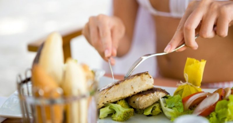 Pranz plin de proteine: peste pe gratar cu lamaie si ulei de masline, o salata verde si biscuiti din faina integrala.