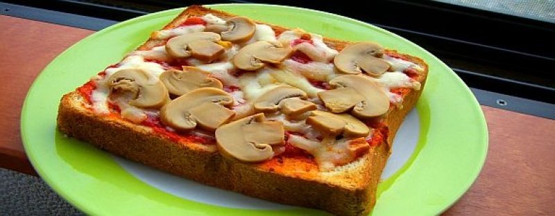 O felie de toast crocanta, garnisita cu legume gustoase si branza - aceasta este o portie din pizza inedita pe care v-o prezentam in continuare.